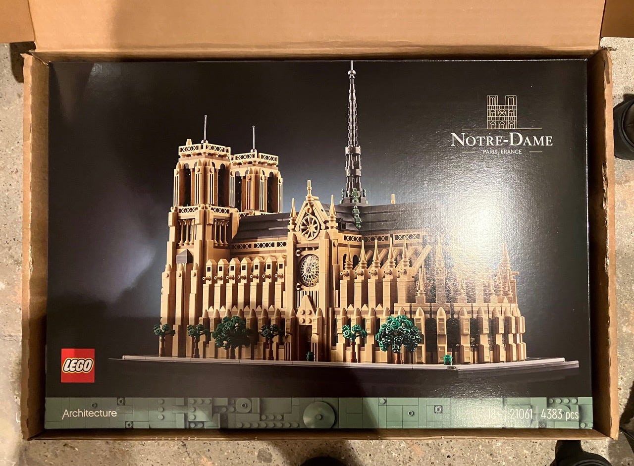 Meanwhile, Dan already has me doing my homework. Because he’s one of the best people in the world and has known me for a Very Long Time, he knew there could be no better prep for our arrival in Paris than BUILDING NOTRE-DAME.