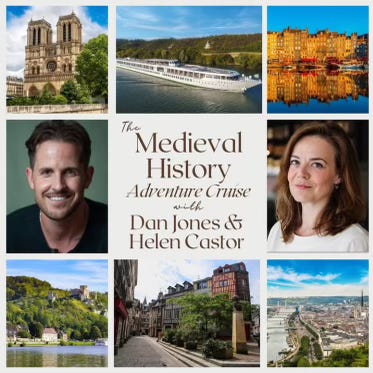 From 5–10 April Dan and I will be sailing down the Seine from Paris to the sea and back again, stopping at the most fascinating places, and talking about medieval history ALL THE WAY. News hot off the press is that two cabins on the (otherwise sold-out) ship have just become available. If you might like one (or both!) of them, the excellent Author Fan Travel can give you all the details: click here for more. Please do join us: it’ll be FUN.